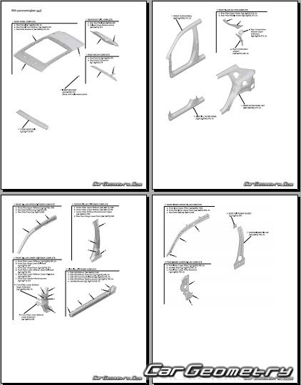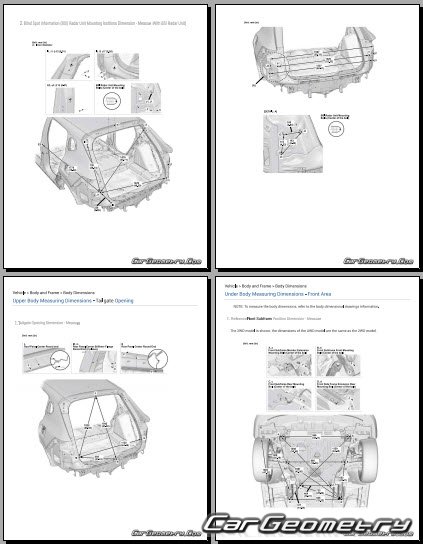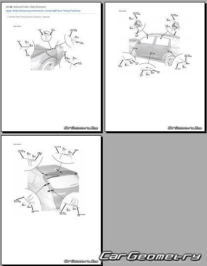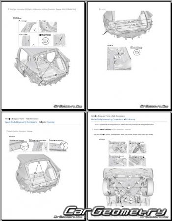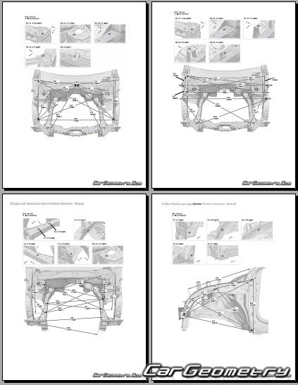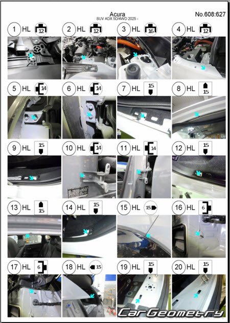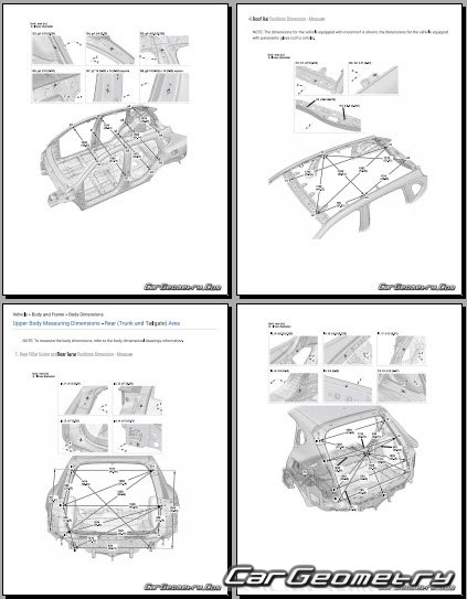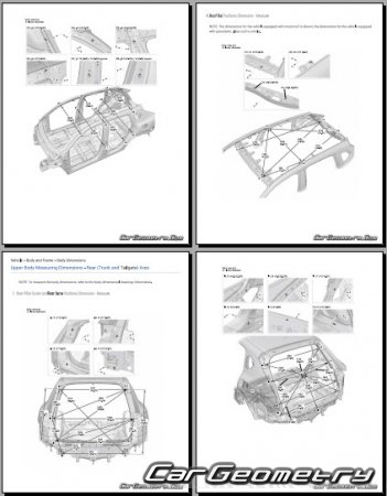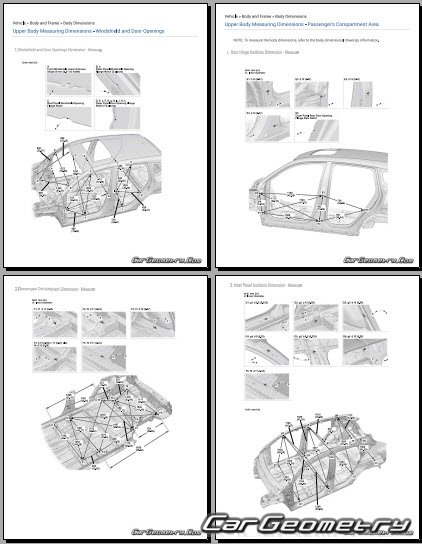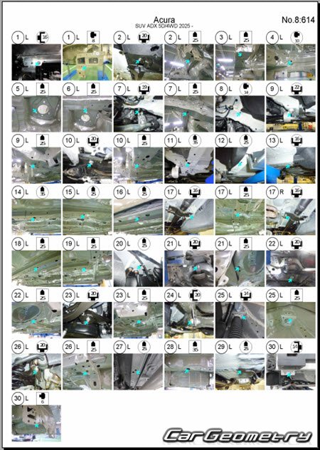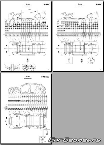 Body dimensions for restoring the body geometry of Acura ADX 2025-2030. With the help of this information, you can check the geometry of the damaged body, as well as carry out restoration work on the straightening of cars.