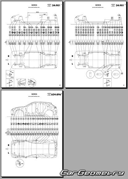 One of the key features of the manual is its coverage of body dimensions and control points. These dimensions provide precise measurements of the vehicle's body components, allowing technicians to accurately assess any deviations from the original specifications. The control points serve as reference points for checking the alignment and geometry of the vehicle's body, ensuring that repairs are carried out with precision.