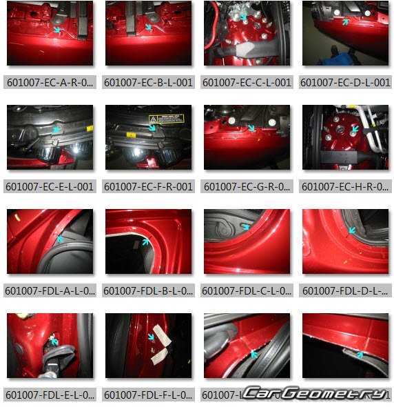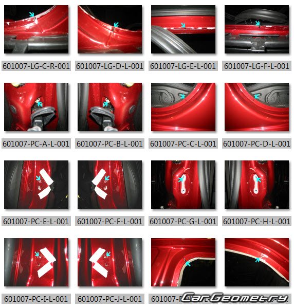 Body dimensions for restoring the body geometry of Alfa Romeo 159 (Type 939) 2005-2012. With the help of this information, you can check the geometry of the damaged body, as well as carry out restoration work on the straightening of cars.