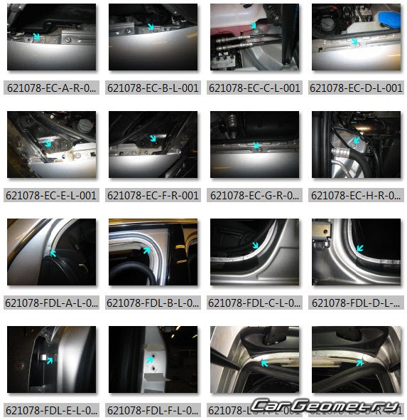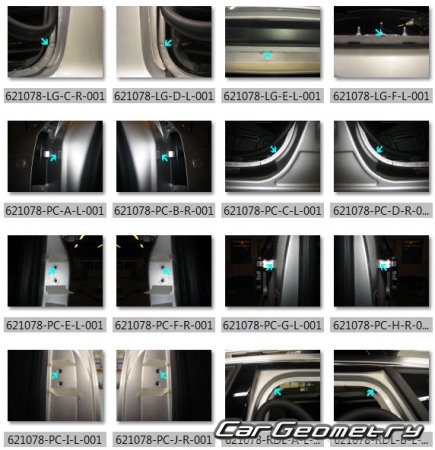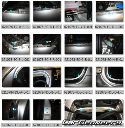 The factory body repair manual contains body dimensions for the Audi A4 Avant (B7,8E) 2002–2008 and includes description of various body parts replacement, body dimension, control points for the Audi A4.