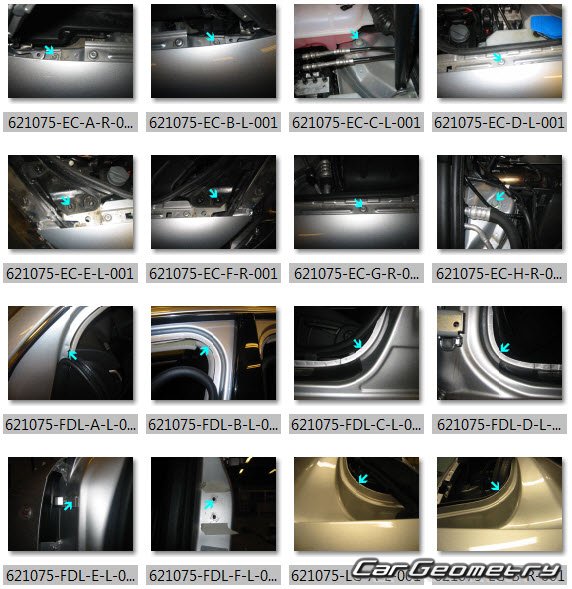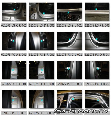 The factory body repair manual contains body dimensions for the Audi A4 Sedan (B7,8E) 2002–2008 and includes description of various body parts replacement, body dimension, control points for the Audi A4.