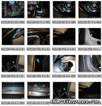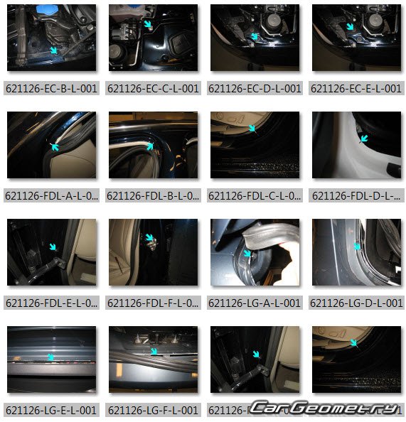 Information for the Audi A4 Avant 2008–2015 body geometric dimensions, control points, images of body elements, materials used, recommendations on applicable types, methods and materials for the welding points; places and materials for applying seam, soundproof and anti-corrosion sealants; points and directions for pre-cuts of body parts for the future installation of the new ones; types of interior materials, definitions and decoding.