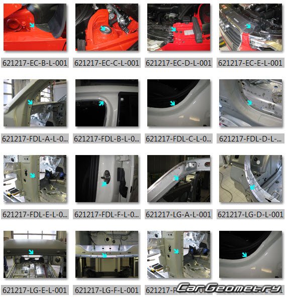 Information for the Audi A1 2010-2018 body geometric dimensions, control points, images of body elements, materials used, recommendations on applicable types, methods and materials for the welding points; places and materials for applying seam, soundproof and anti-corrosion sealants; points and directions for pre-cuts of body parts for the future installation of the new ones; types of interior materials, definitions and decoding.