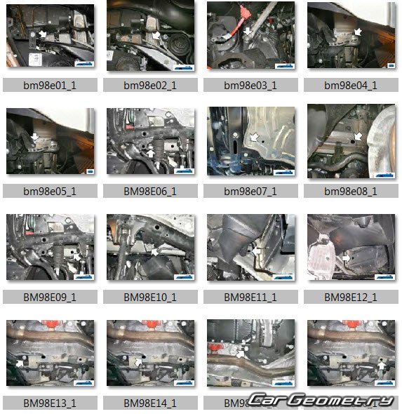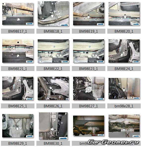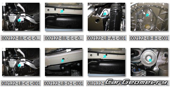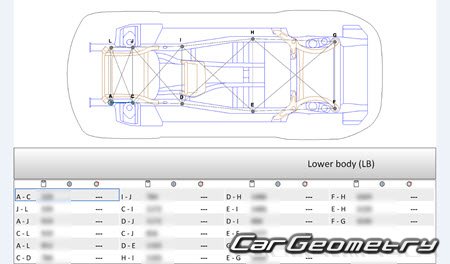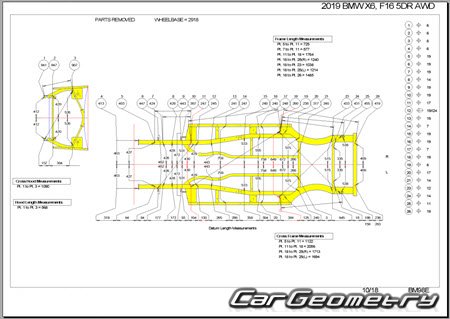 Body dimensions for restoring the body geometry of BMW X6 (F16) 2014-2020. With the help of this information, you can check the geometry of the damaged body, as well as carry out restoration work on the straightening of cars.