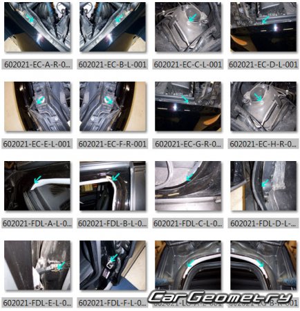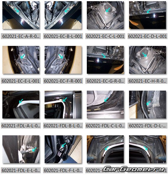 Body dimensions for restoring the body geometry of BMW X5 (E53) 2000-2006. With the help of this information, you can check the geometry of the damaged body, as well as carry out restoration work on the straightening of cars.