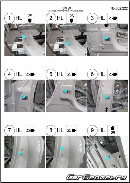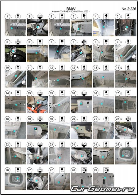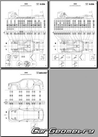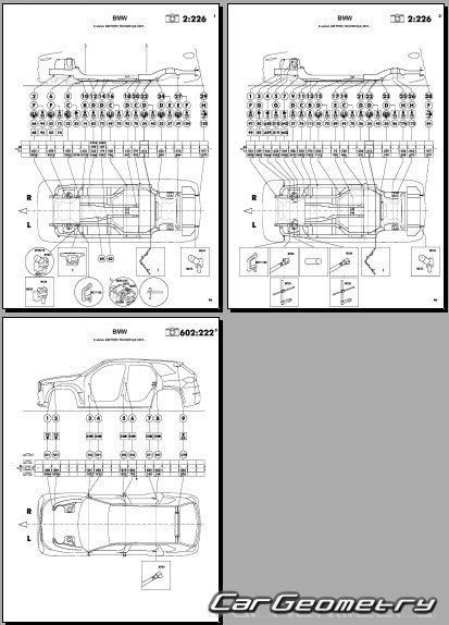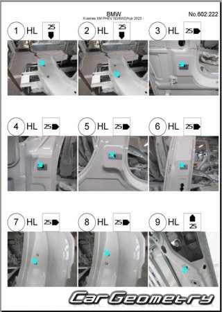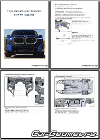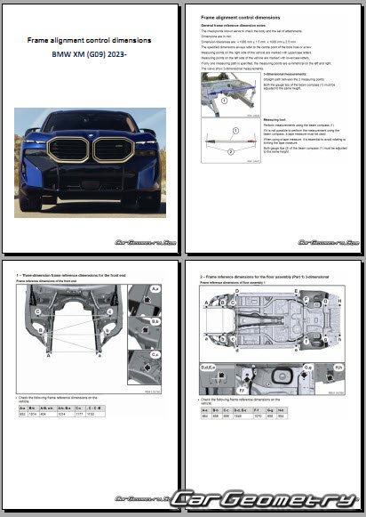 Body dimensions for restoring the body geometry of BMW XM (G09) from 2023. With the help of this information, you can check the geometry of the damaged body, as well as carry out restoration work on the straightening of cars.