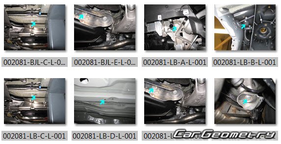 Body dimensions for restoring the body geometry of BMW 5 Series (F10) 2011-2017. With the help of this information, you can check the geometry of the damaged body, as well as carry out restoration work on the straightening of cars.