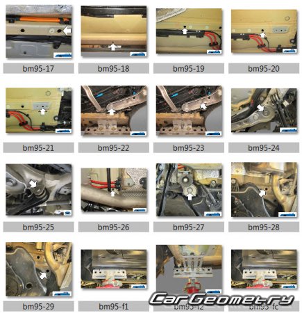 Body dimensions for restoring the body geometry of BMW 5 Series Touring (G31) 2017-2024. With the help of this information, you can check the geometry of the damaged body, as well as carry out restoration work on the straightening of cars.