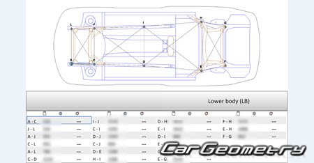 Body dimensions for restoring the body geometry of BMW 4 Series Coupe (F32) 2013-2020. With the help of this information, you can check the geometry of the damaged body, as well as carry out restoration work on the straightening of cars.