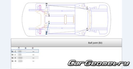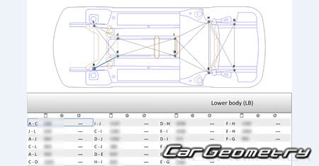 Body dimensions for restoring the body geometry of BMW 2 Series Active Tourer (F45) & Gran Tourer (F46) 2015-2021. With the help of this information, you can check the geometry of the damaged body, as well as carry out restoration work on the straightening of cars.
