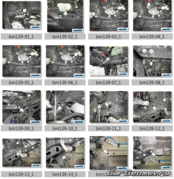 Body dimensions for restoring the body geometry of BMW 2-Series Gran Coupe (F44) 2020-2026. With the help of this information, you can check the geometry of the damaged body, as well as carry out restoration work on the straightening of cars.
