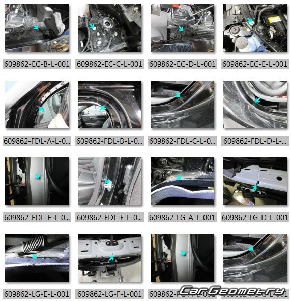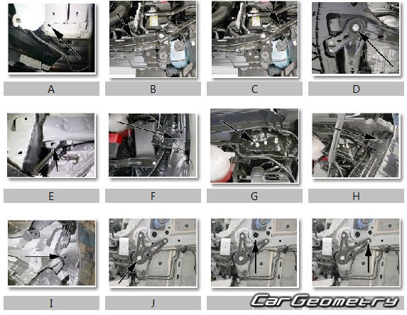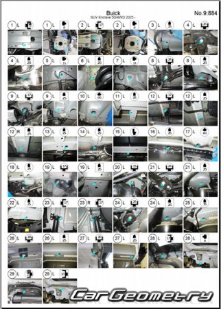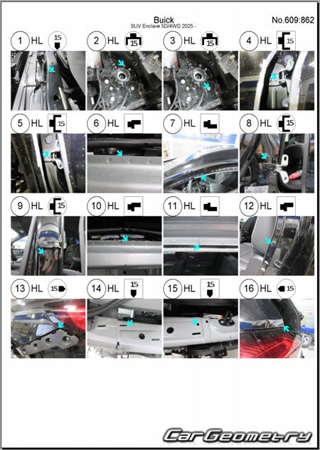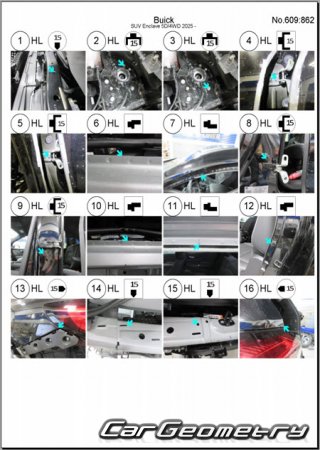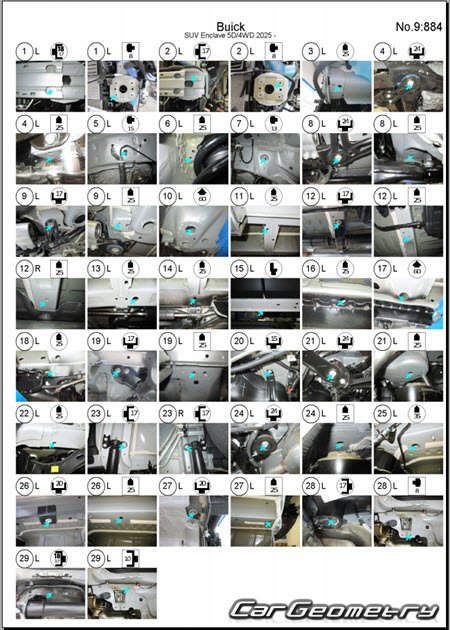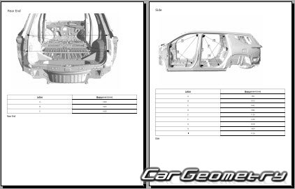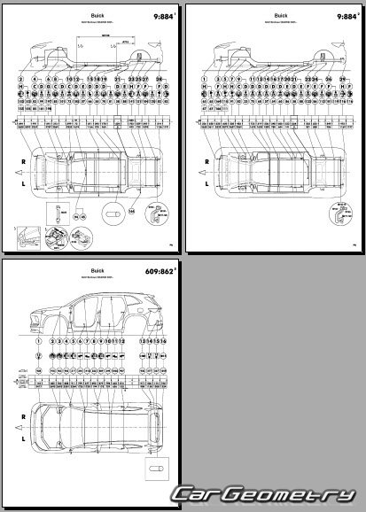 Body dimensions for restoring the body geometry of Buick Enclave 2024-2030. With the help of this information, you can check the geometry of the damaged body, as well as carry out restoration work on the straightening of cars.