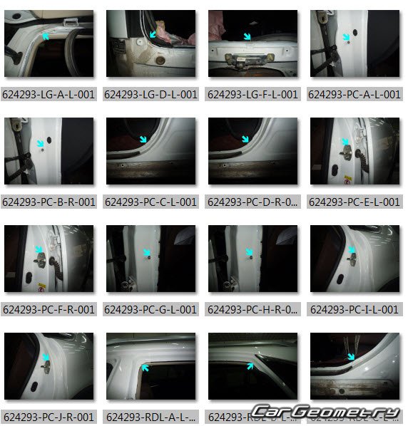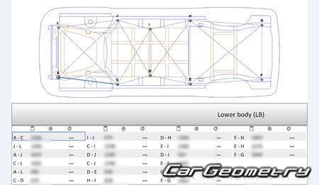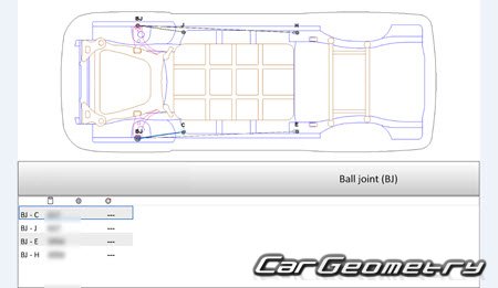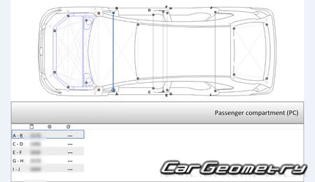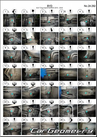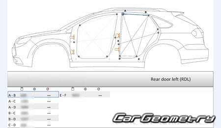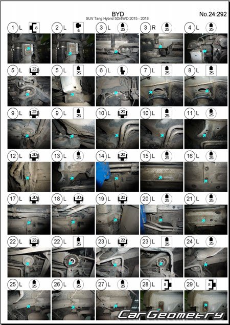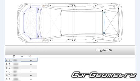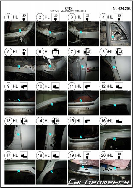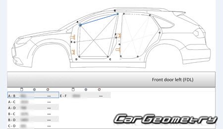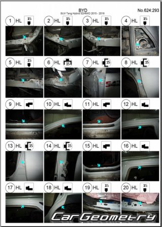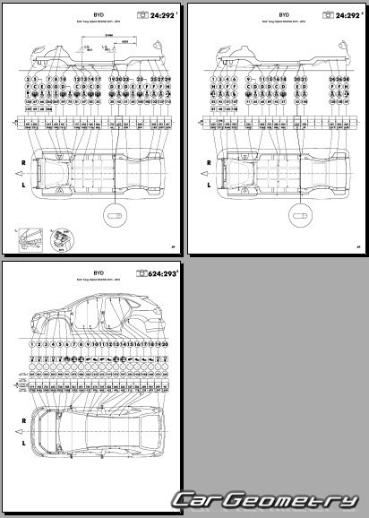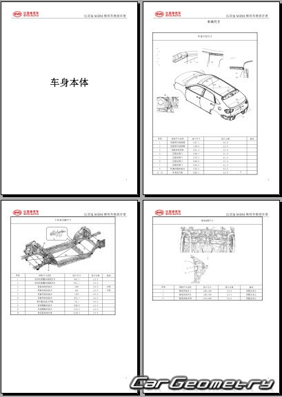 Body dimensions for restoring the body geometry of BYD Tang 2014–2018. With the help of this information, you can check the geometry of the damaged body, as well as carry out restoration work on the straightening of cars.