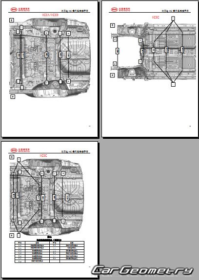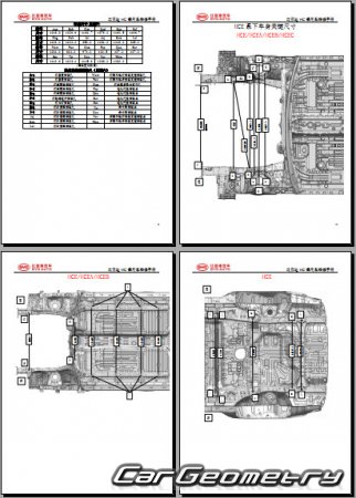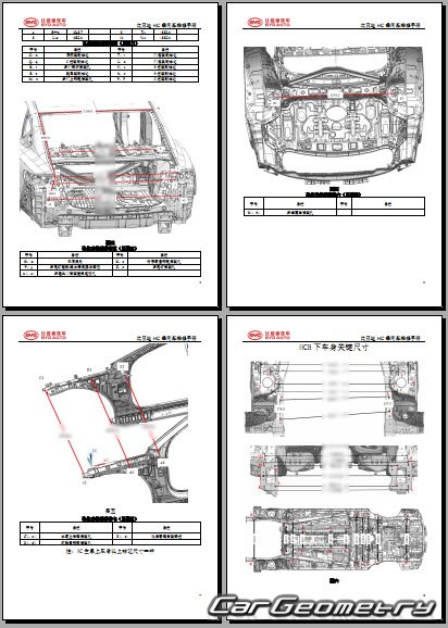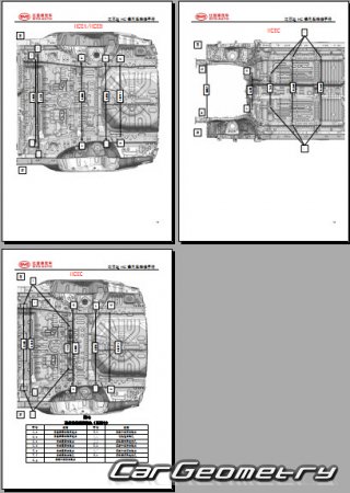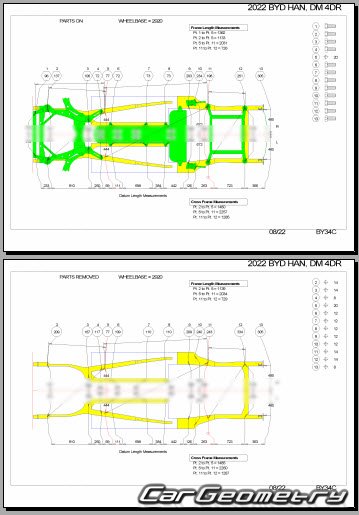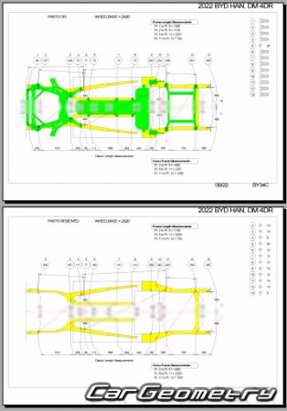 Body dimensions for restoring the body geometry of BYD Han DMi 2020–2025. With the help of this information, you can check the geometry of the damaged body, as well as carry out restoration work on the straightening of cars.