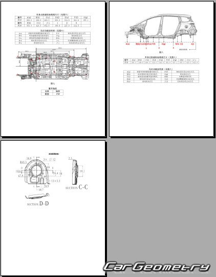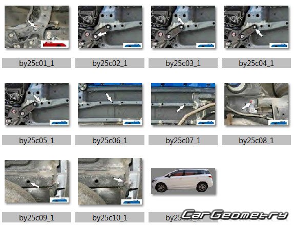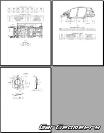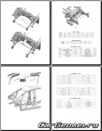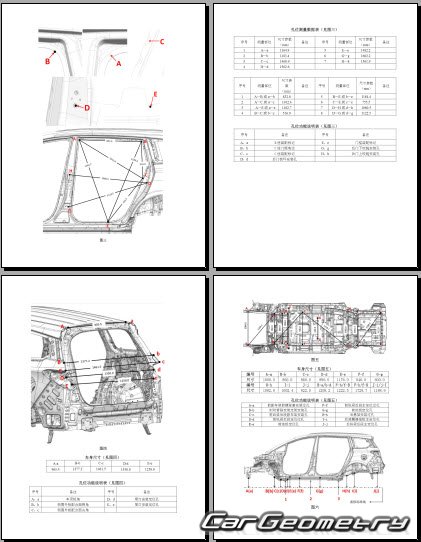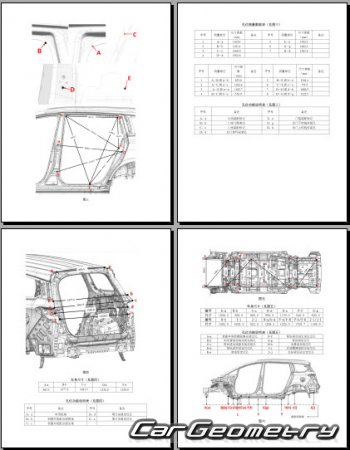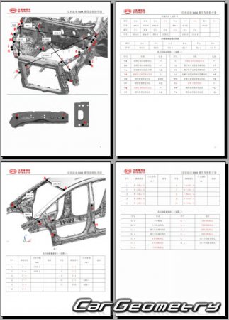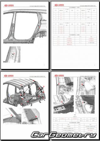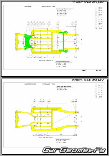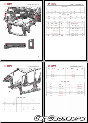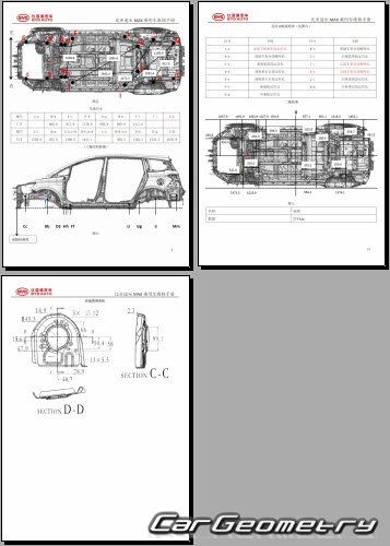 Body dimensions for restoring the body geometry of BYD Song Max 2017–2023. With the help of this information, you can check the geometry of the damaged body, as well as carry out restoration work on the straightening of cars.