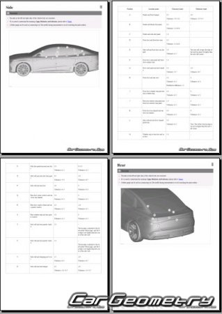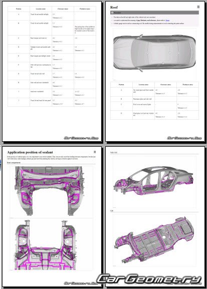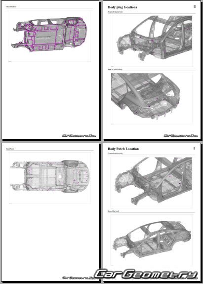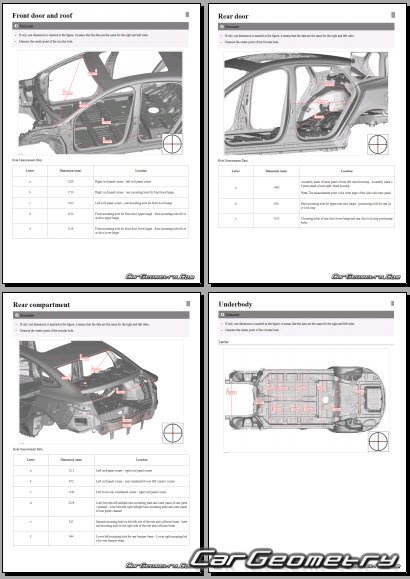 Body dimensions for restoring the body geometry of BYD Seal 7 DM-i 2025-2030. With the help of this information, you can check the geometry of the damaged body, as well as carry out restoration work on the straightening of cars.