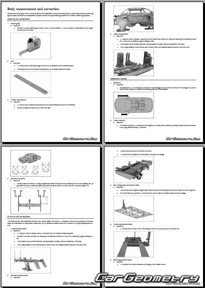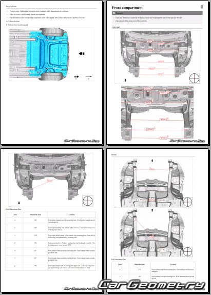 Upperbody dimensions include pillar widths for inside passenger compartment, door, windshield and rear window. Choice of Edge-of-hole or center-of-hole dimensions, widths measured from centerline and individual datum lengths for underbody information, diagonal measurements, deck lid measurements for more extensive and complete collision repairs.