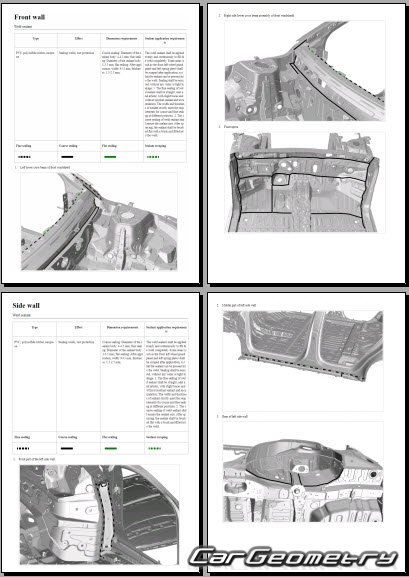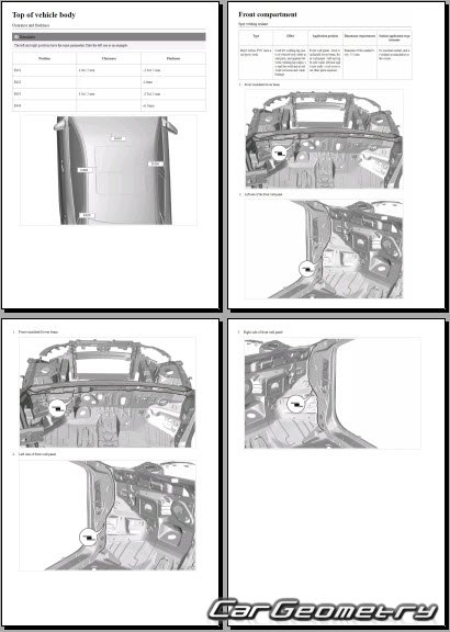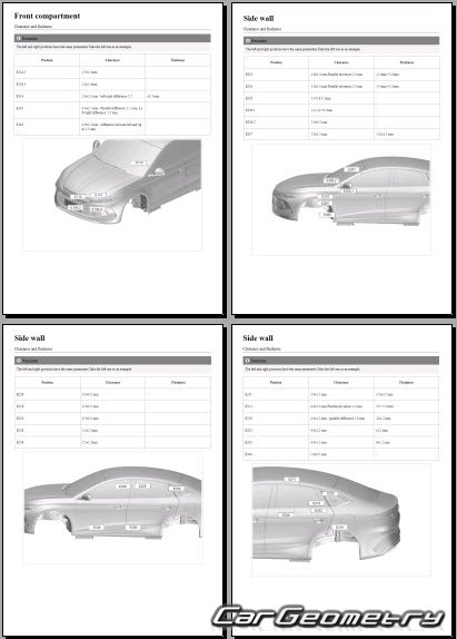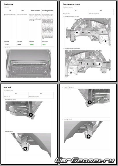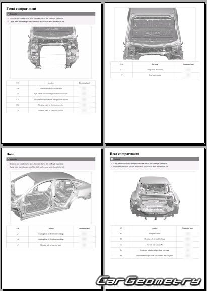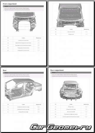 Body dimensions for restoring the body geometry of BYD Qin L DMi 2024-2028. With the help of this information, you can check the geometry of the damaged body, as well as carry out restoration work on the straightening of cars.
