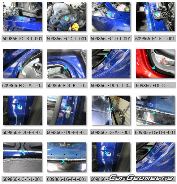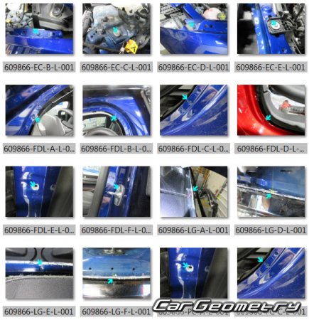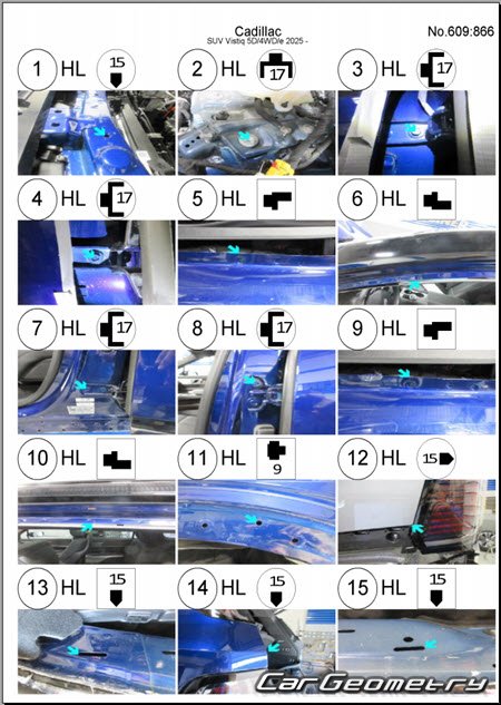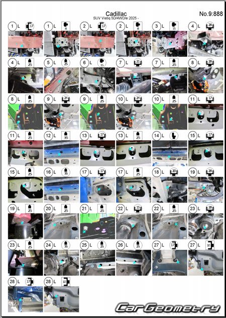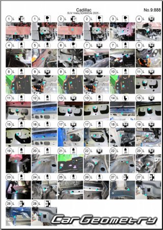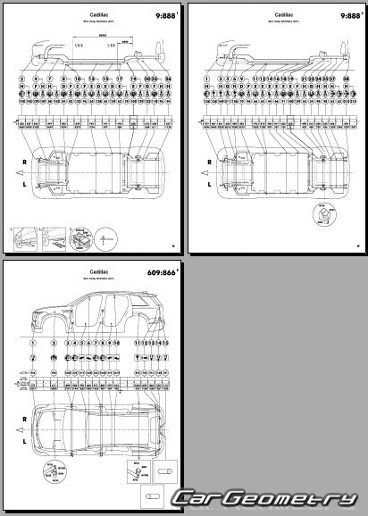 Body dimensions for restoring the body geometry of Cadillac Vistiq from 2025. With the help of this information, you can check the geometry of the damaged body, as well as carry out restoration work on the straightening of cars.