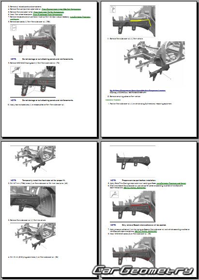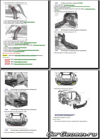 One of the key features of the manual is its coverage of body dimensions and control points. These dimensions provide precise measurements of the vehicle's body components, allowing technicians to accurately assess any deviations from the original specifications. The control points serve as reference points for checking the alignment and geometry of the vehicle's body, ensuring that repairs are carried out with precision.