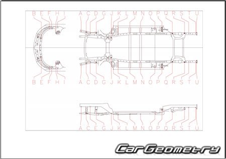 Body dimensions for restoring the body geometry of Chevrolet Equinox from 2024. With the help of this information, you can check the geometry of the damaged body, as well as carry out restoration work on the straightening of cars.