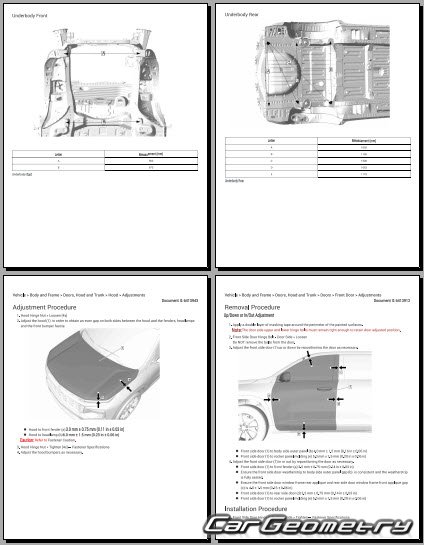 One of the key features of the manual is its coverage of body dimensions and control points. These dimensions provide precise measurements of the vehicle's body components, allowing technicians to accurately assess any deviations from the original specifications. The control points serve as reference points for checking the alignment and geometry of the vehicle's body, ensuring that repairs are carried out with precision.