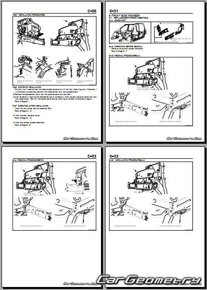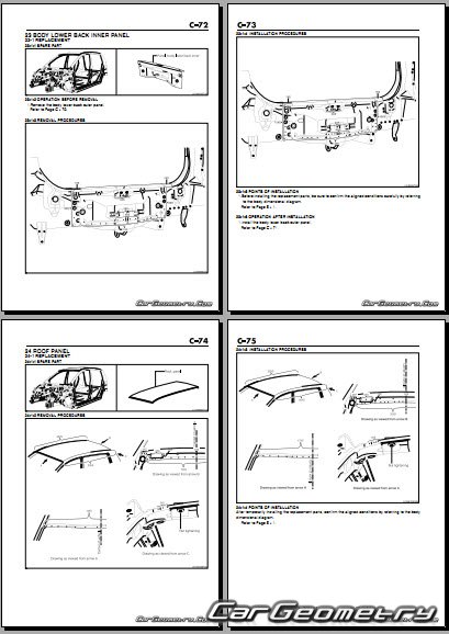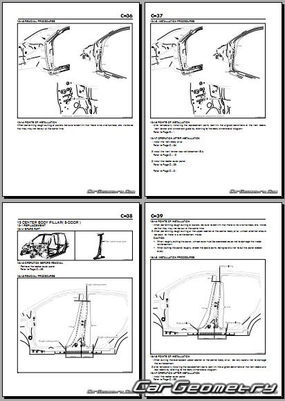 Daihatsu Cuore & Charade (L251) 2003-2007 Body Repair Manual is a comprehensive guide that provides in-depth information and instructions for repairing and restoring the body of the Daihatsu Cuore & Charade. The manual includes step-by-step repair procedures for various body panels and components, ensuring accurate and efficient collision repairs.