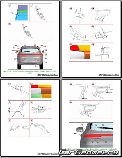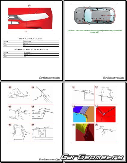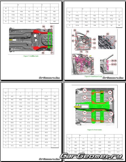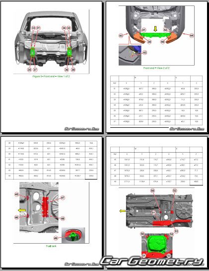 Body dimensions for restoring the body geometry of Dodge Hornet 2022-2030. With the help of this information, you can check the geometry of the damaged body, as well as carry out restoration work on the straightening of cars.