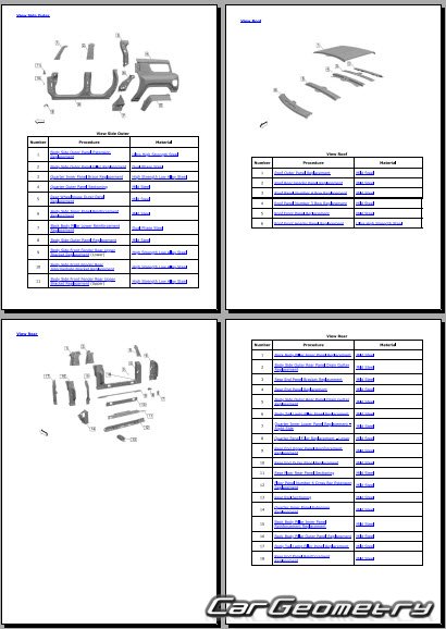 The manual features diagrams and illustrations that depict cross-sections of body elements, aiding in visualizing the structural composition and facilitating the repair process. It also covers cutting procedures and directions for removing and installing new body components, ensuring accurate and efficient repairs.