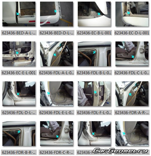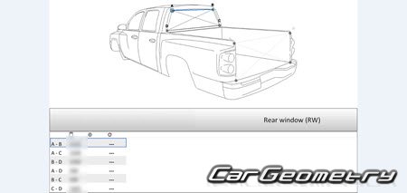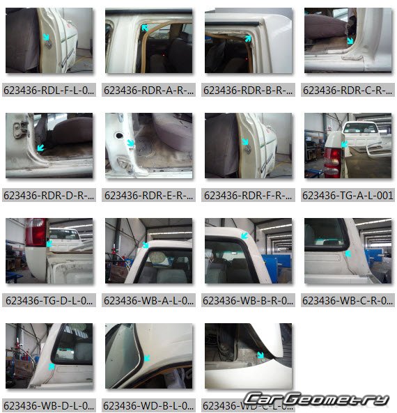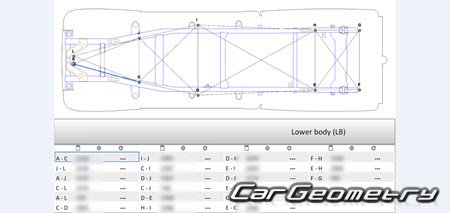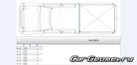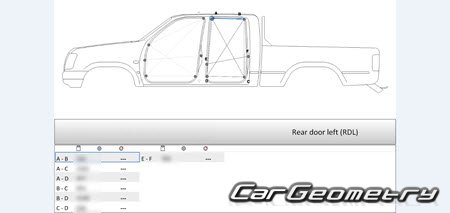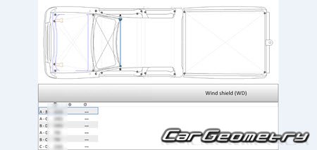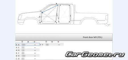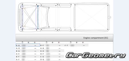 Body dimensions for restoring the body geometry of Great Wall Deer 2003–2008. With the help of this information, you can check the geometry of the damaged body, as well as carry out restoration work on the straightening of cars.