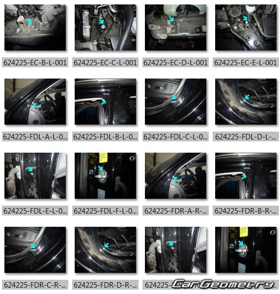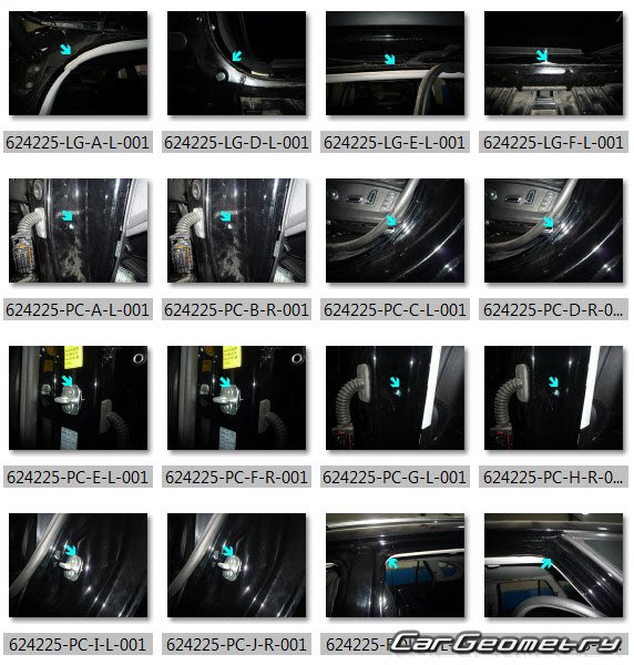 Information for the Haval H8 2015-2022 body geometric dimensions, control points, images of body elements, materials used, recommendations on applicable types, methods and materials for the welding points; places and materials for applying seam, soundproof and anti-corrosion sealants; points and directions for pre-cuts of body parts for the future installation of the new ones; types of interior materials, definitions and decoding.