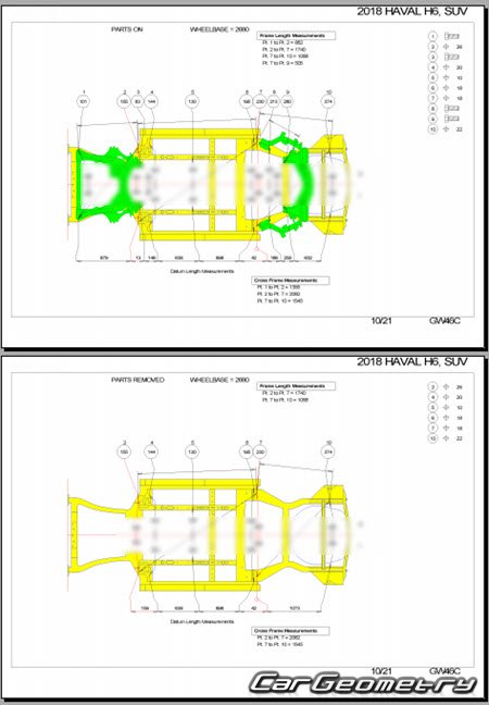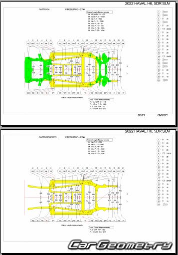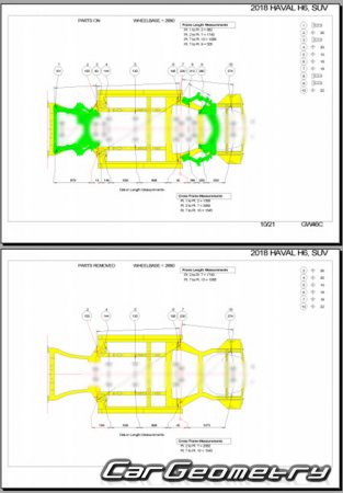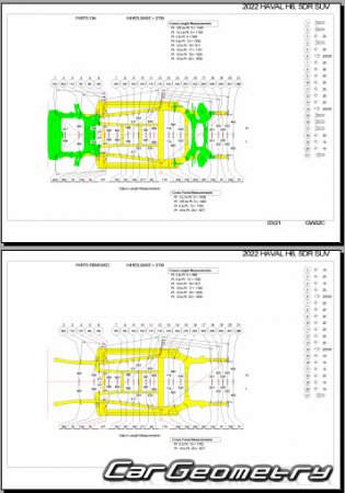 The factory body repair manual contains body dimensions for the Haval H6 2015-2022 and includes description of various body parts replacement, body dimension, control points for the Haval H6.