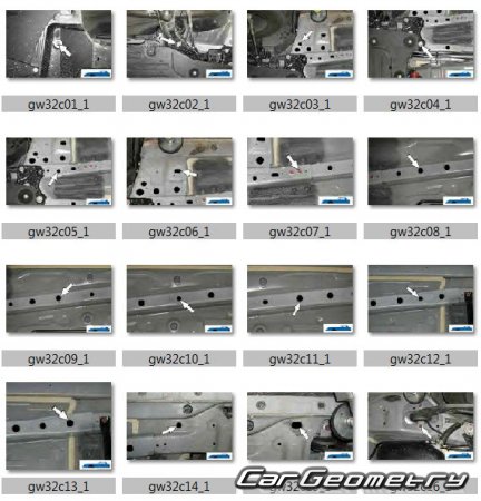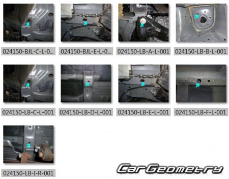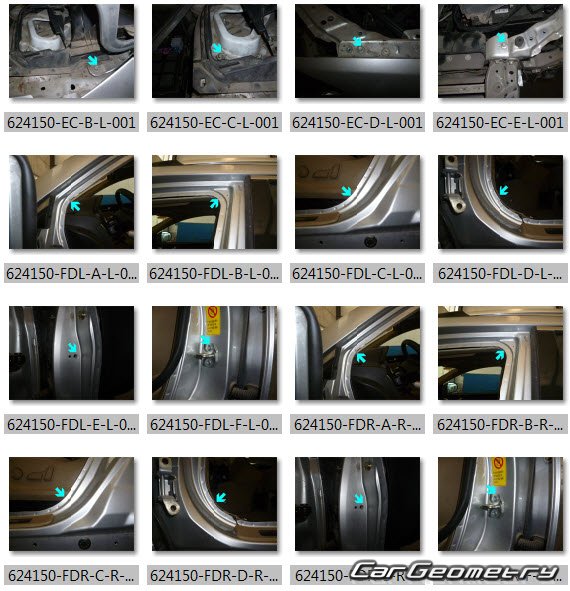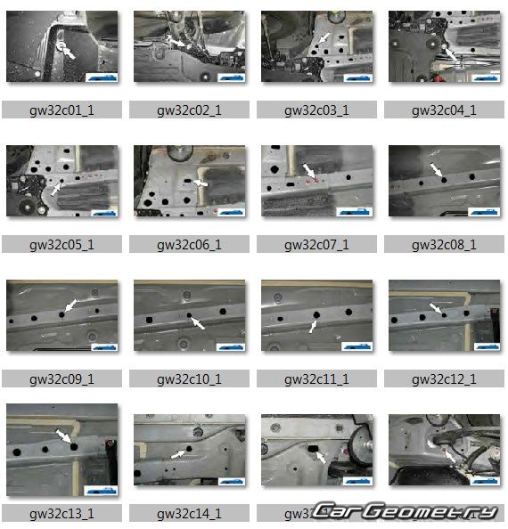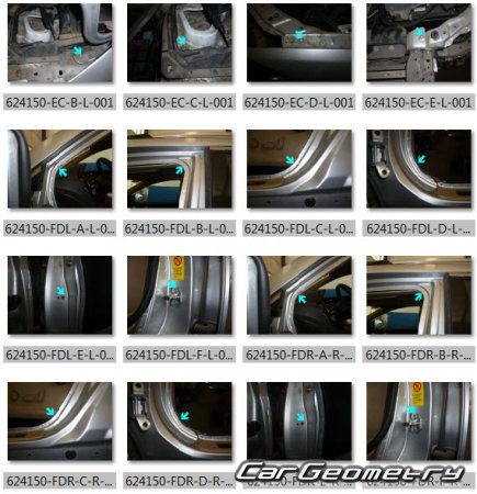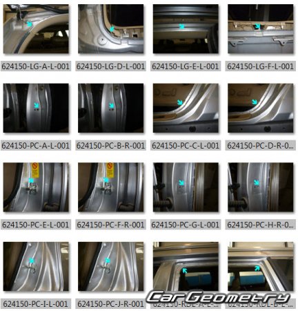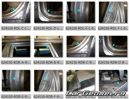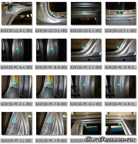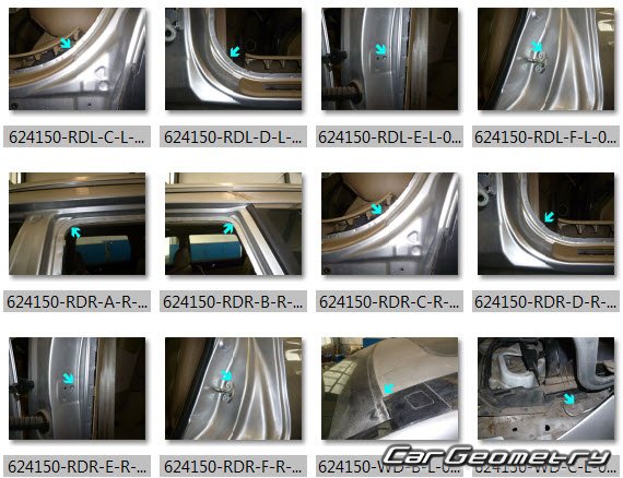 Information for the Haval H6 2015-2022 body geometric dimensions, control points, images of body elements, materials used, recommendations on applicable types, methods and materials for the welding points; places and materials for applying seam, soundproof and anti-corrosion sealants; points and directions for pre-cuts of body parts for the future installation of the new ones; types of interior materials, definitions and decoding.