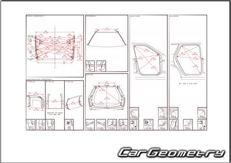 Information for the Hyundai Palisade Hybrid (LX3 HEV) body geometric dimensions, control points, images of body elements, materials used, recommendations on applicable types, methods and materials for the welding points; places and materials for applying seam, soundproof and anti-corrosion sealants; points and directions for pre-cuts of body parts for the future installation of the new ones; types of interior materials, definitions and decoding.