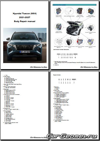 Hyundai Tuscon (NX4) 2021-2027 Body Repair Manual 238 pages in English. This collection contains a huge amount of extremely useful and necessary information for those working in body shops themselves and the owners of body repair companies involved in Hyundai Tuscon body repair.