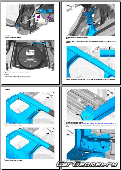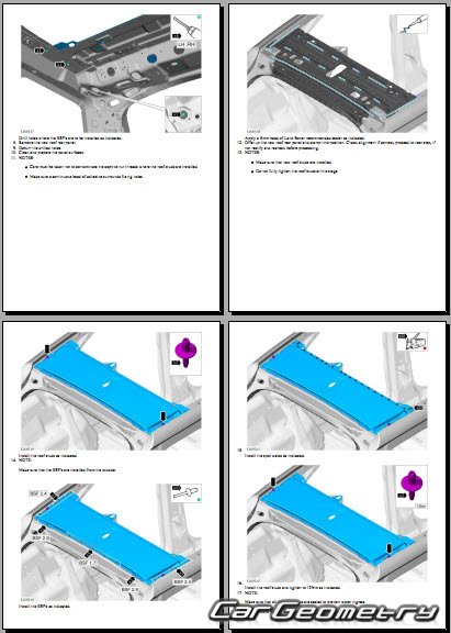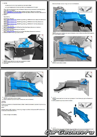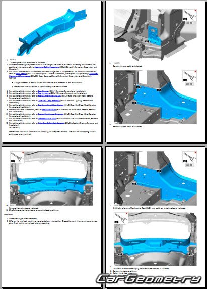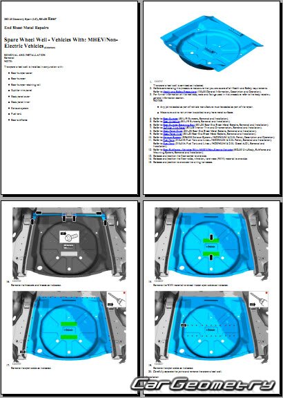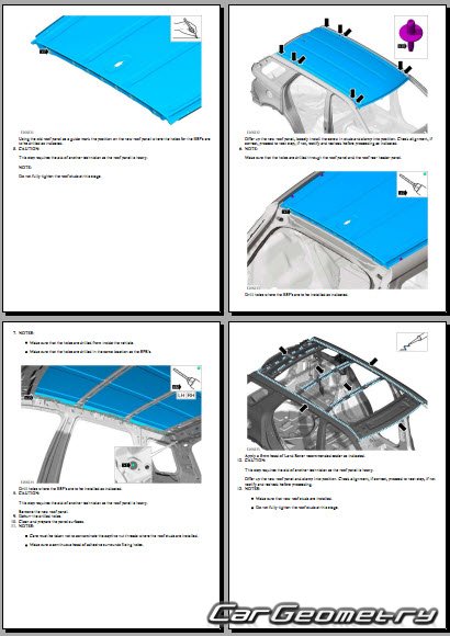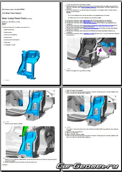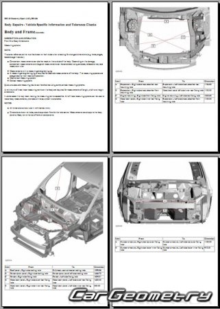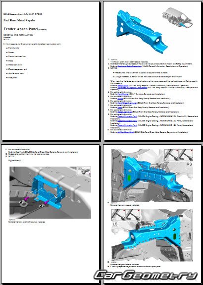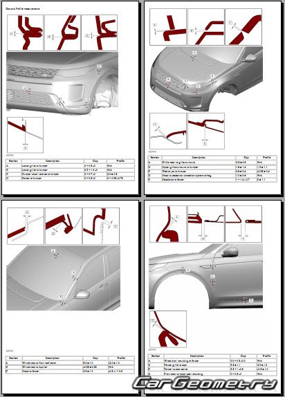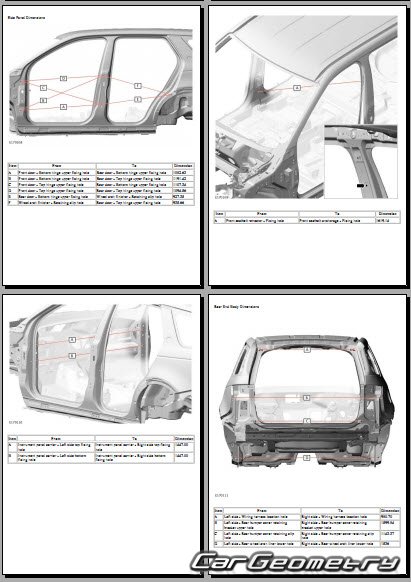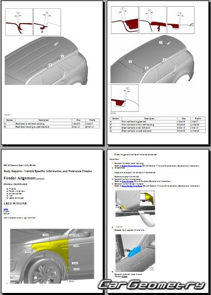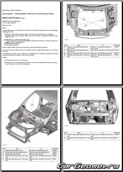 The factory body repair manual contains body dimensions for the Land Rover Discovery Sport (L550) 2015-2023 and includes description of various body parts replacement, body dimension, control points for the Land Rover Discovery Sport.