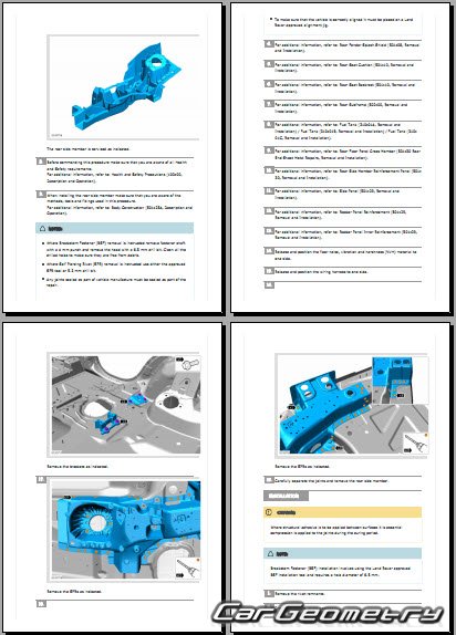 The factory body repair manual contains body dimensions for the Land Rover Discovery 5 (L462) 2017-2026 and includes description of various body parts replacement, body dimension, control points for the Land Rover Discovery 5.