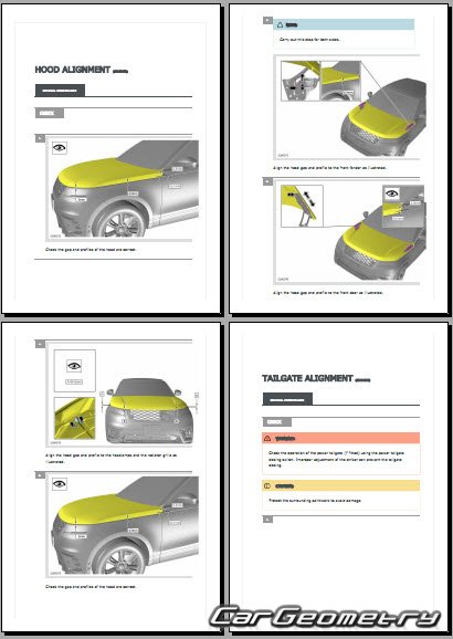 Range Rover Velar (L560) 2017-2024 Body Repair Manual 490 pages in English. This collection contains a huge amount of extremely useful and necessary information for those working in body shops themselves and the owners of body repair companies involved in Range Rover Velar body repair.