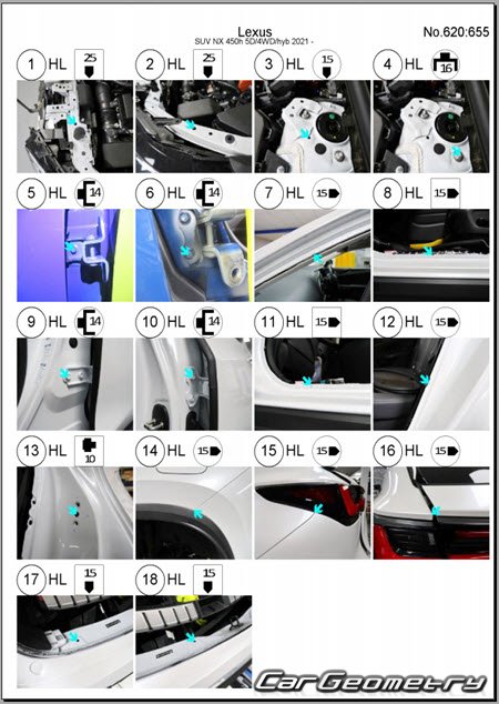 Lexus NX450h+ (AAZH21, AAZH26) 2021-2027 Body Repair Manual 329 pages in English. This collection contains a huge amount of extremely useful and necessary information for those working in body shops themselves and the owners of body repair companies involved in Lexus NX450h+ body repair.