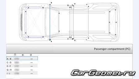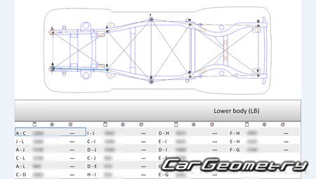 Body dimensions for restoring the body geometry of Lincoln Navigator (U326) 2007-2014. With the help of this information, you can check the geometry of the damaged body, as well as carry out restoration work on the straightening of cars.
