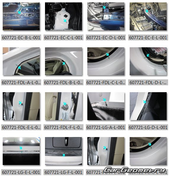 Information for the Lincoln MKZ 2017-2021 body geometric dimensions, control points, images of body elements, materials used, recommendations on applicable types, methods and materials for the welding points; places and materials for applying seam, soundproof and anti-corrosion sealants; points and directions for pre-cuts of body parts for the future installation of the new ones; types of interior materials, definitions and decoding.