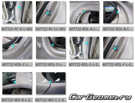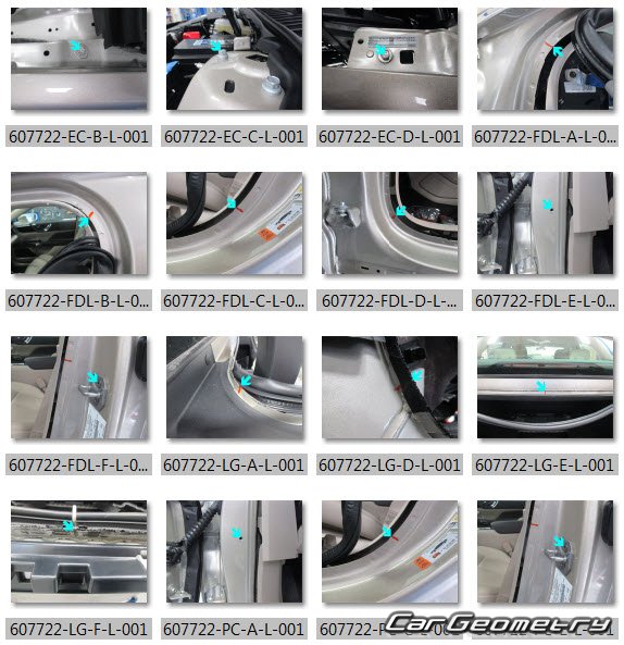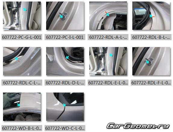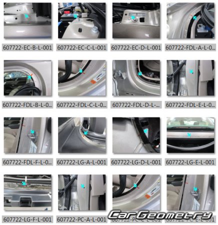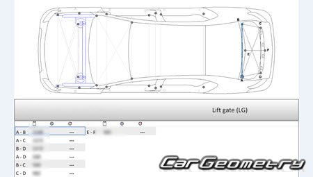 Information for the Lincoln Continental X 2017-2024 body geometric dimensions, control points, images of body elements, materials used, recommendations on applicable types, methods and materials for the welding points; places and materials for applying seam, soundproof and anti-corrosion sealants; points and directions for pre-cuts of body parts for the future installation of the new ones; types of interior materials, definitions and decoding.