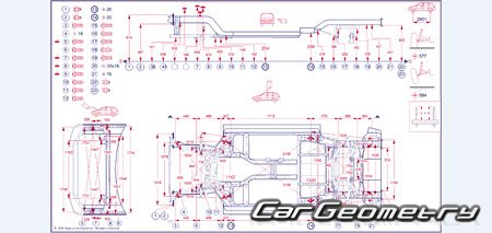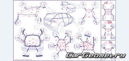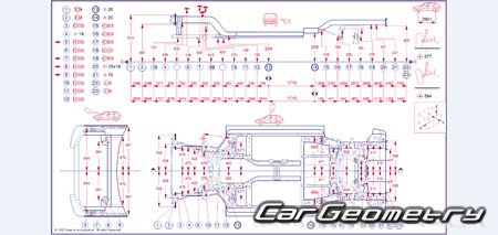 Body dimensions for restoring the body geometry of Lincoln Nautilus 2023-2028. With the help of this information, you can check the geometry of the damaged body, as well as carry out restoration work on the straightening of cars.