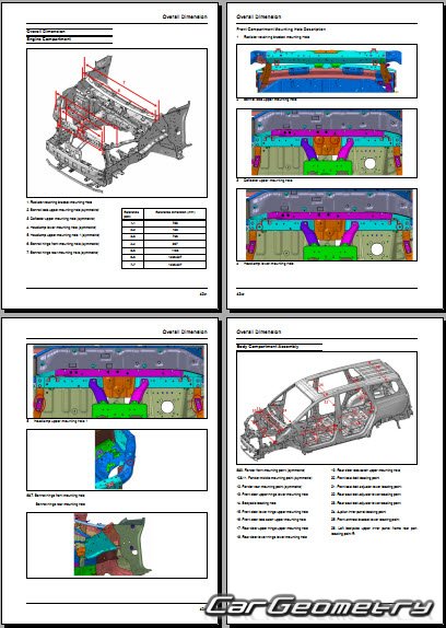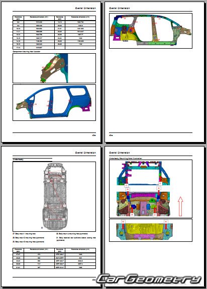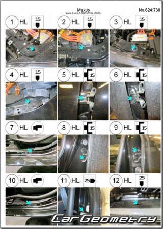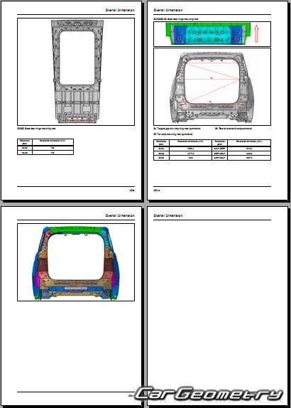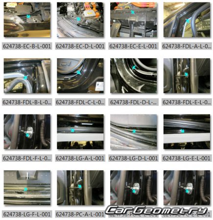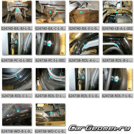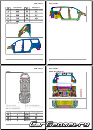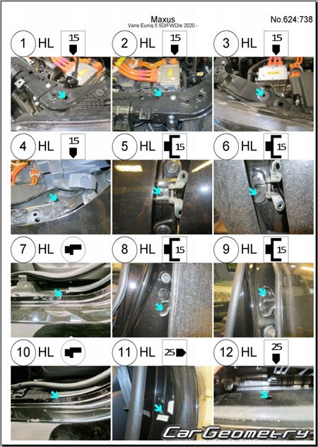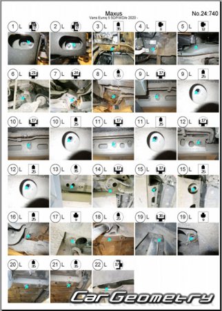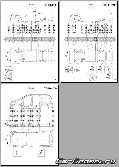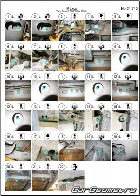 Body dimensions for restoring the body geometry of Maxus Euniq5 2020-2025. With the help of this information, you can check the geometry of the damaged body, as well as carry out restoration work on the straightening of cars.
