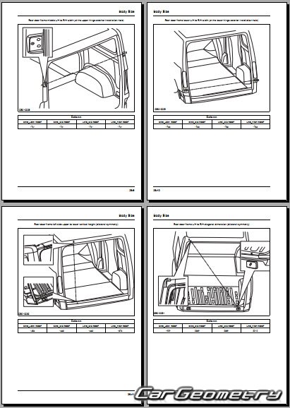 Upperbody dimensions include pillar widths for inside passenger compartment, door, windshield and rear window. Choice of Edge-of-hole or center-of-hole dimensions, widths measured from centerline and individual datum lengths for underbody information, diagonal measurements, deck lid measurements for more extensive and complete collision repairs.