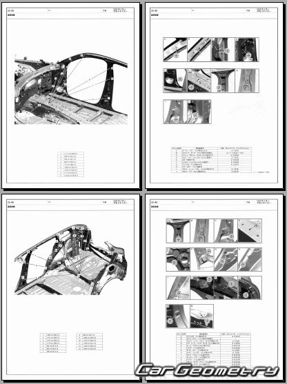 One of the essential features of the manual is its focus on body dimensions and control points. It provides precise measurements for key body components, allowing technicians to assess and restore the vehicle's geometry accurately. The control points serve as reference points for evaluating the alignment and structural integrity of the vehicle's body, ensuring that repairs are carried out to the highest standards.