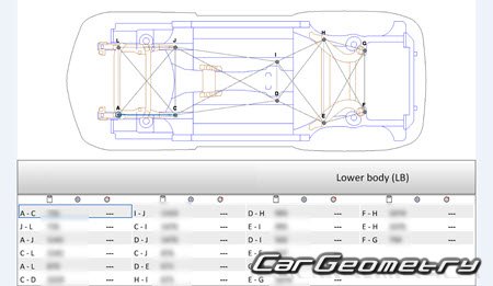 Body dimensions for restoring the body geometry of Mercedes SL (R231) 2013-2020. With the help of this information, you can check the geometry of the damaged body, as well as carry out restoration work on the straightening of cars.