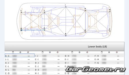 Body dimensions for restoring the body geometry of Mercedes R-Class (W251) 2006-2013. With the help of this information, you can check the geometry of the damaged body (SWB & LWB), as well as carry out restoration work on the straightening of cars.