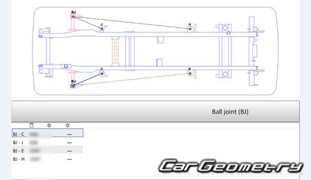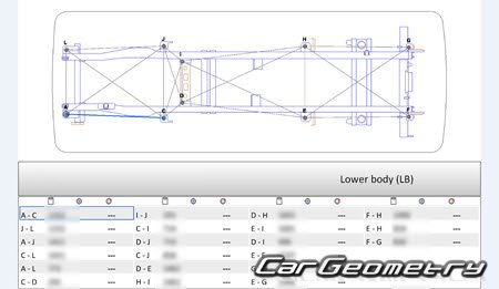Body dimensions for restoring the body geometry of Mercedes G-Class (W463) 1993-2015. With the help of this information, you can check the geometry of the damaged body, as well as carry out restoration work on the straightening of cars.