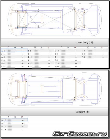 Body dimensions for restoring the body geometry of Mercedes E-Class Sedan (W213) 2016–2023. With the help of this information, you can check the geometry of the damaged body, as well as carry out restoration work on the straightening of cars.